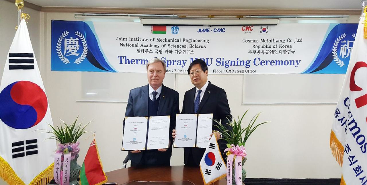 从白俄罗斯国立科学研究所引进热喷射相关的最新技术,签署了技术合作MOU。